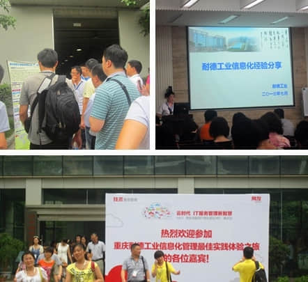 在下午的活动中,与会嘉宾一同参观了重庆耐德工业集团,通过“重庆耐德工业信息化管理最佳实践体验之旅”活动,与会嘉宾首先参观了耐德先进的生产线,机械加工车间、装备车间、测试车间,随后来到会议室,与耐德工业集团副总经理王旭、耐德工业集团信息部长叶跃云等一道进行了信息化支撑下的耐德工业一体化管理经验分享。