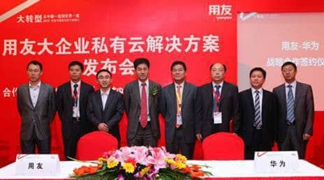 日前,在 “2012`经营与管理创新年会”期间召开的用友大企业私有云解决方案发布会上,亚太本土最大的管理软件提供商、中国领先的云服务提供商用友软件股份有限公司(YONYOU,以下简称“用友”)与全球领先的信息与通信解决方案提供商华为技术有限公司(以下简称“华为”),签署了解决方案合作协议并发布“用友—华为战略合作方案”。