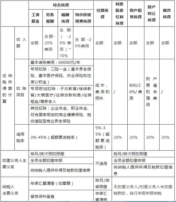 1.居民个人取得综合所得,按年计算个人所得税;有扣缴义务人的,由扣缴义务人按月或者按次预扣预缴税款(详见个人所得税预扣率表三)。