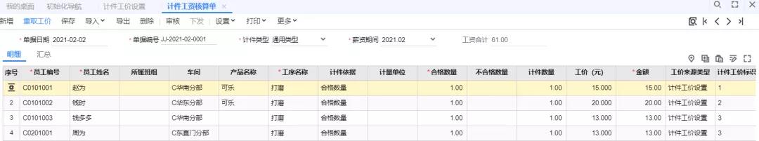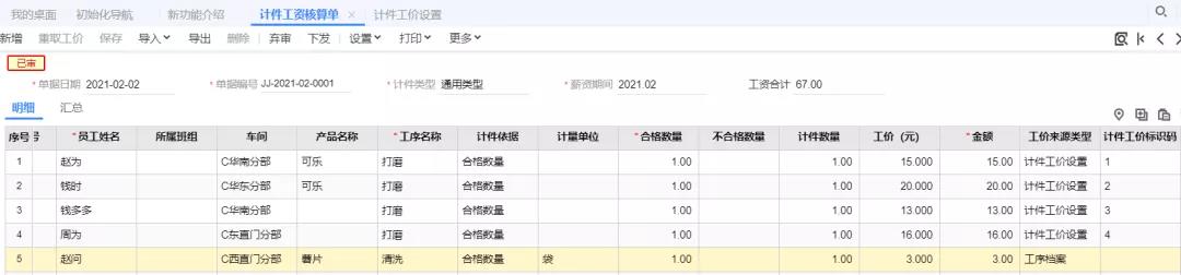 小贴士:计件工资核算单按辅单位核算计件工资,与产品主单位不一致;
