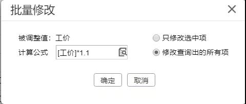 【修改查询出的所有项】表示无需勾选,直接对当前查询出的工价设置行进行修改;