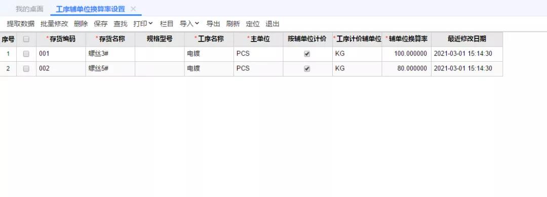 工序辅单位换算率设置:当同一道工序,不同产品主单位和辅单位的换算率不一致时,可以在此设置工序不同存货的主辅单位的换算率。